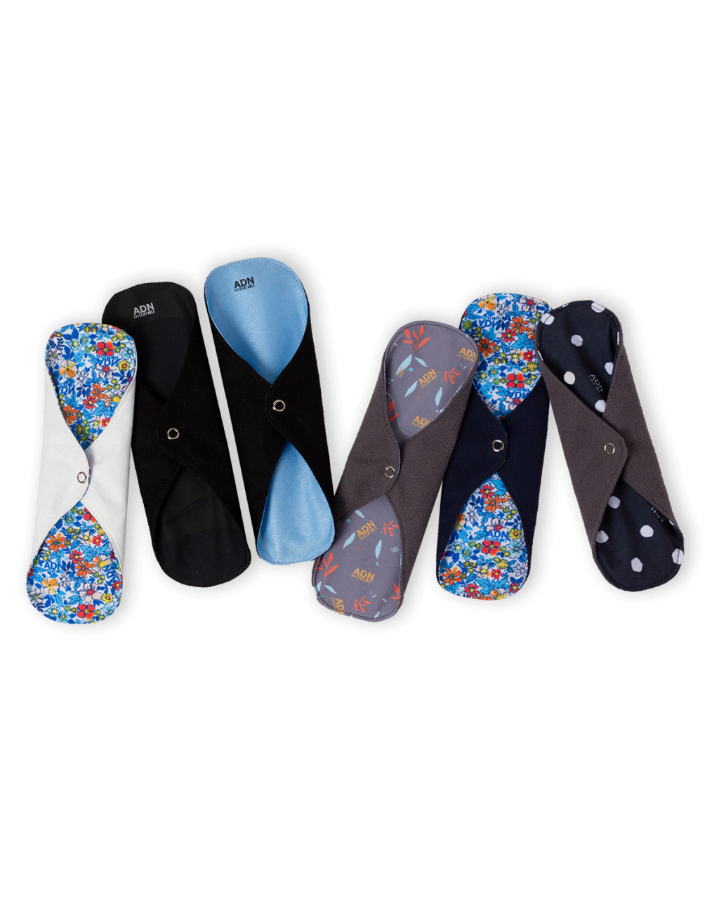 Las toallitas femeninas reutilizables las diseñamos para sustituir a las toallitas descartables. Están hechas de materiales lavables (telas), suaves, respirables, que evitan olores e irritación en la piel. Tienen una vida útil de dos años. Es una opción sostenible y económica en el mediano plazo. Vienen en variedad de estilos, tamaños y modelos.